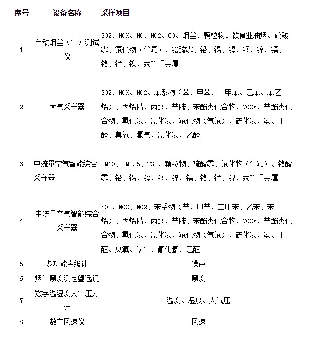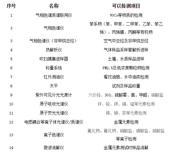 主要檢測(cè)設(shè)備及項(xiàng)目